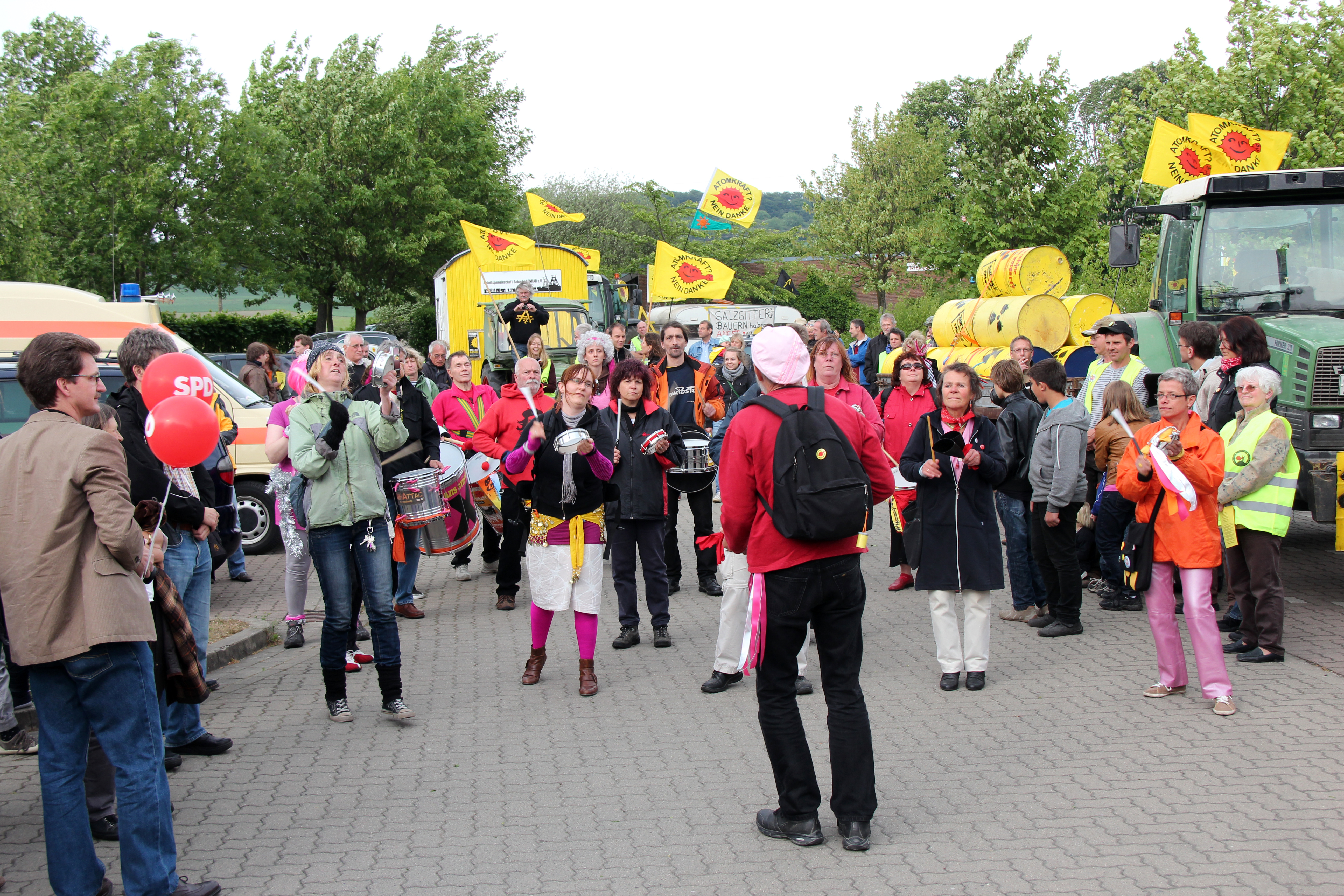 vom Sammelpunkt in Remlingen aus begleiteten uns die beiden Sambagruppen von Attac Braunschweig und der IG-Metall Wolfesburg