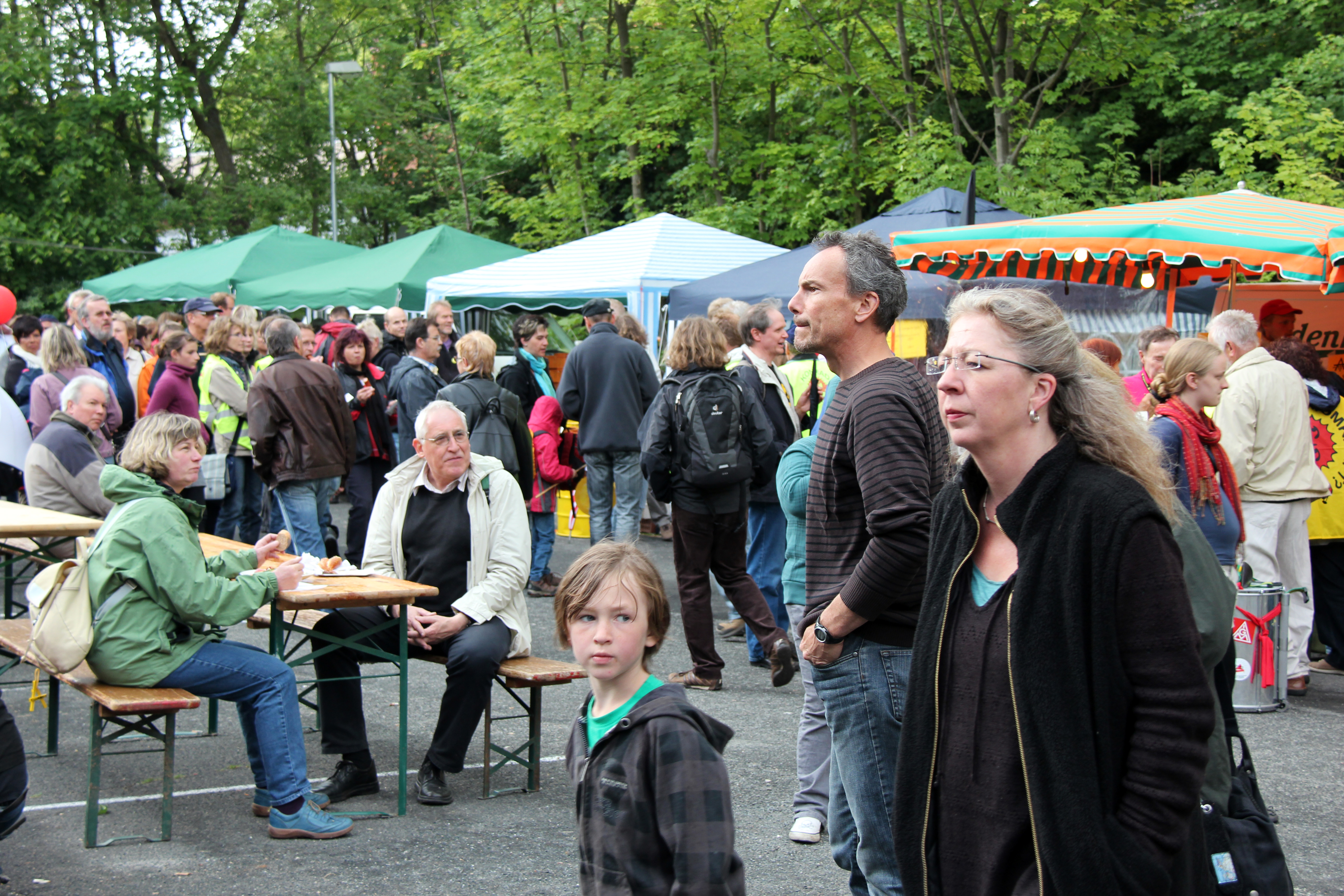nur selten haben wir die Musik für Reden von der Hauptbühne unterbrochen - wir führten die Gespräche in Kleingruppen an den Infoständen und den Tischgruppen |